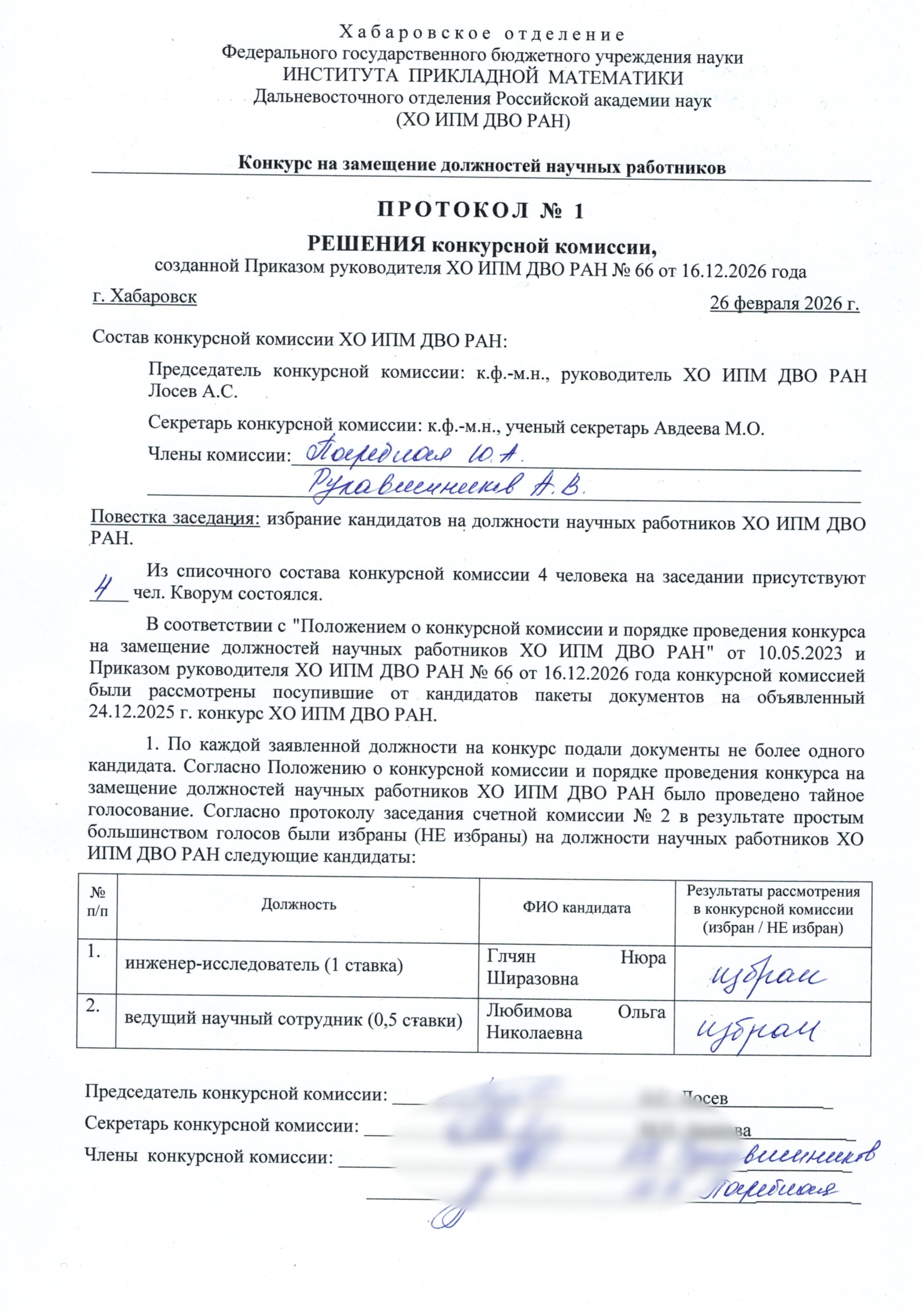 Дальневосточного отделения Российской академии наук (ХО ИПМ ДВО РАН) объявляет конкурс на замещение вакантных должностей